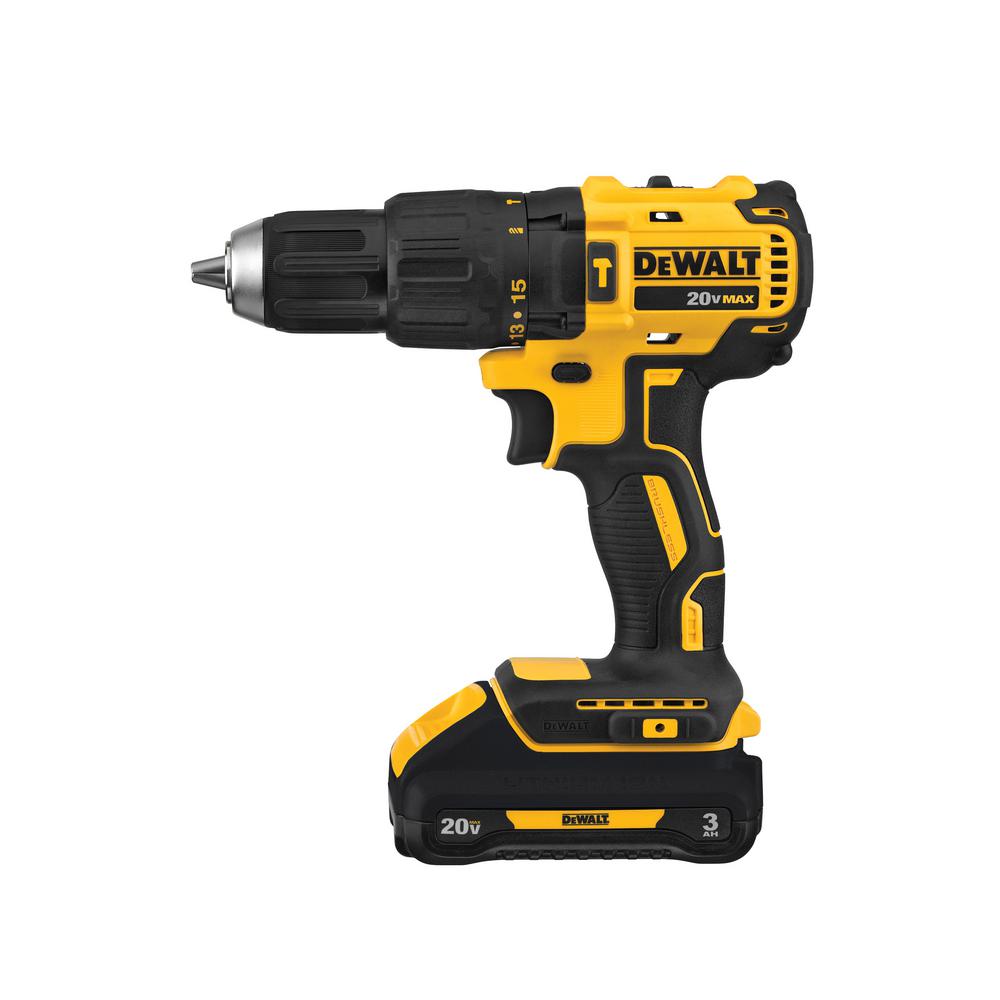 20-Volt MAX Lithium-Ion Cordless Brushless 1/2 in. Compact Hammer Drill with Battery 3.0Ah, Charger and Tool Bag