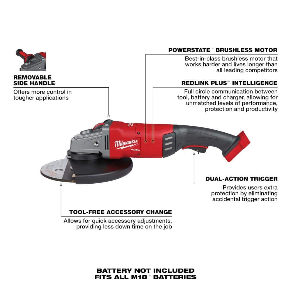 Milwaukee M18 FUEL 18-Volt Brushless Cordless 7/9 in. Large Angle Grinder Kit with (1) 12.0Ah Battery, Rapid Charger & Bag