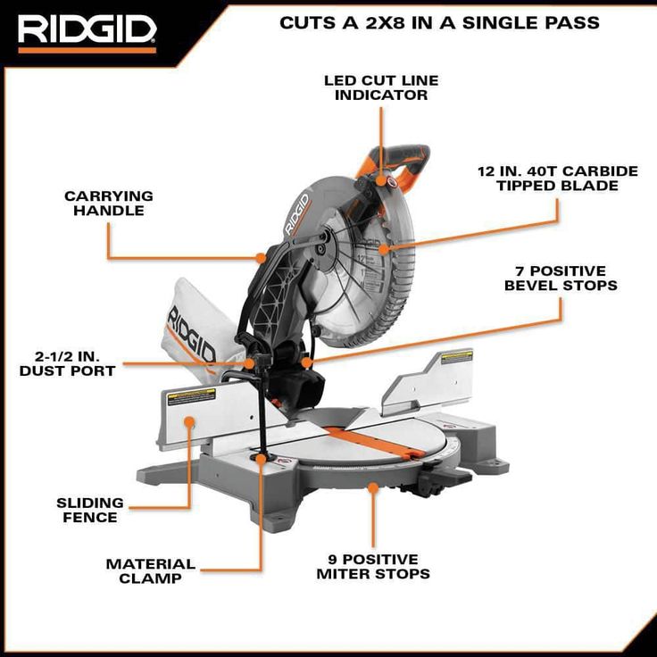 • Includes: (1) R4123 15 Amp 12 in. Dual Bevel Miter Saw with LED, (1) 12 in. blade and blade wrench, (2) sliding miter fences, (1) dust bag, (1) work clamp, and operator's manual