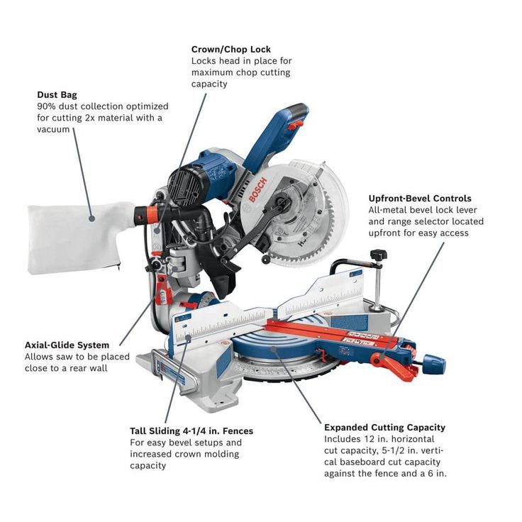 Bosch CM10GD 10 In. Dual-Bevel Glide miter saw delivers accuracy and cutting control at all angles, as well as durable precision throughout the life of the tool. The innovative Axial-Glide System provides wider cross-cuts, enhanced alignment and smoother glide, and the compact design takes up to 10 In. less front-to-back workspace than a slide miter saw. With a 15 Amp motor providing 4,800 no-load RPM, there is plenty of power. Adjustable miter and bevel detents enable users to make precise common miter and bevel cuts, and the override allows for easy angle adjustment. The bevel lock lever and range selector are located safely upfront so users don't have to reach around behind the saw to make a bevel adjustment. Bosch benchtop tools provide the precision and performance your projects require. Durable quality is not only in every tool, but the trust you have in Bosch benchtop tools. The integrated out feed and supports holds up to 18 ft of material. The universal mounting system allows for use with all major competitors' saws. Equipped with an adjustable telescoping leveling leg to provide stability on uneven surfaces.