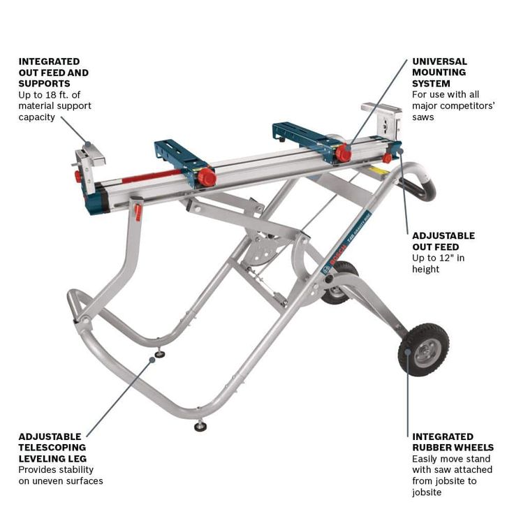 • T4B: integrated rubber wheels easily move stand with saw attached from jobsite to jobsite