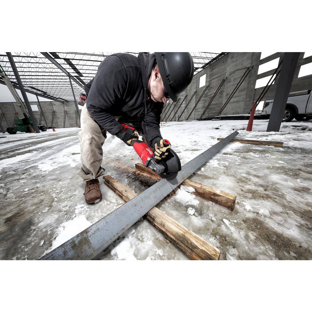 The M18 FUEL 7 in./9 in. Large Angle Grinder is the world ft. s first 18v LAG generating the power of a 15 Amp corded large angle grinder, is up to 2 lbs. lighter and has 9 in. grinding capacity. Providing high performance, advanced ergonomics and legendary durability, this grinder is designed to complete the toughest grinding, surface preparation and cutting applications with any 7 in. to 9 in. accessory. The POWERSTATE Brushless Motor provides 6,600 RPM and higher speeds under load for corded grinding/cutting performance. REDLINK PLUS intelligence ensures maximum performance and protection from overload, overheating and over discharge. The M18 REDLITHIUM HIGH OUTPUT HD12.0 battery delivers un-match run-time in all applications. Tool-free accessory changes using the FIXTEC nut and guard adjustments mean less downtime during work.