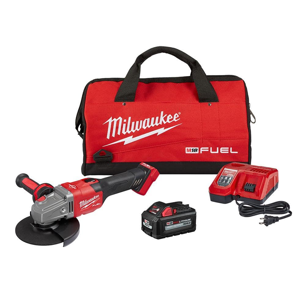 Milwaukee M18 FUEL 18V Brushless Cordless 4-1/2 in.–6 in. Braking Angle Grinder Kit, Slide Switch, Lock-On (XC6.0 Battery)