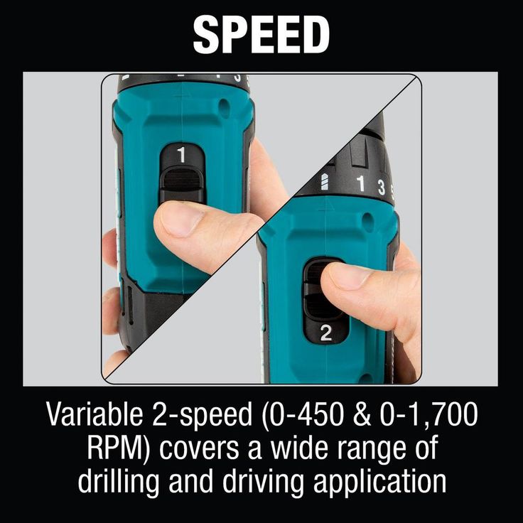 • Variable 2-speed design (0 RPM to 450 RPM and 0 RPM to 1,700 RPM) covers a wide range of drilling and driving applications