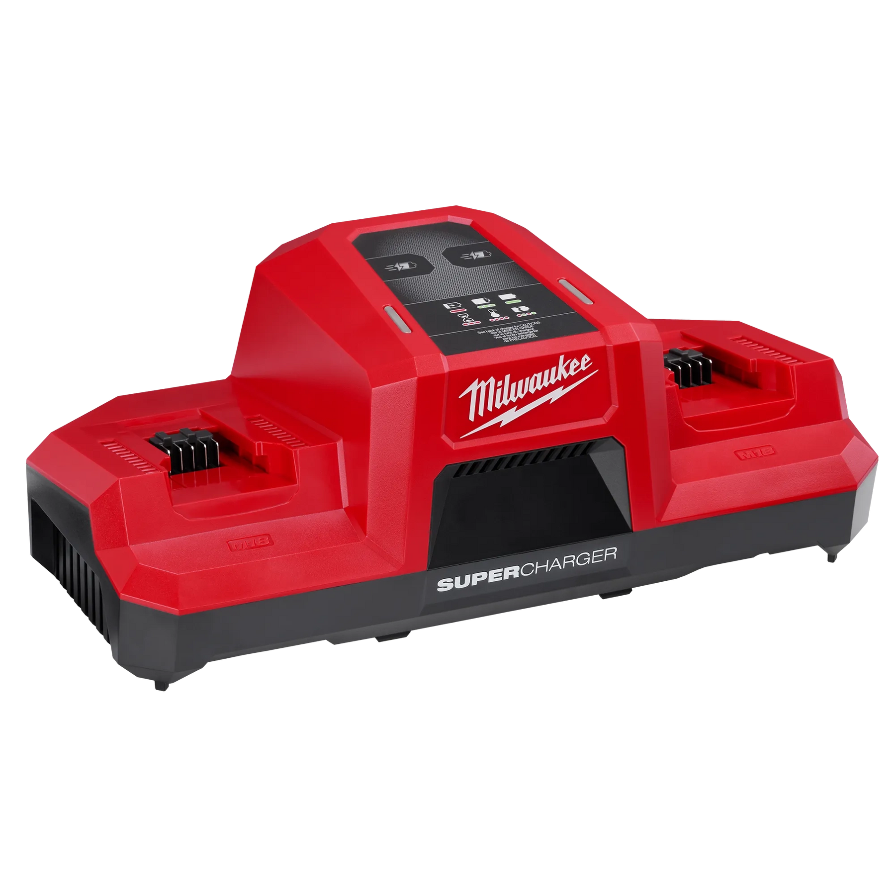 Charge faster and work longer with Milwaukee’s dual-voltage Super Charger bundled with an M18 REDLITHIUM HIGH OUTPUT XC8.0 battery. Compatible with all M12 and M18 packs, this charger delivers up to 4x faster charging and uses REDLINK Intelligence to optimize battery life and performance.