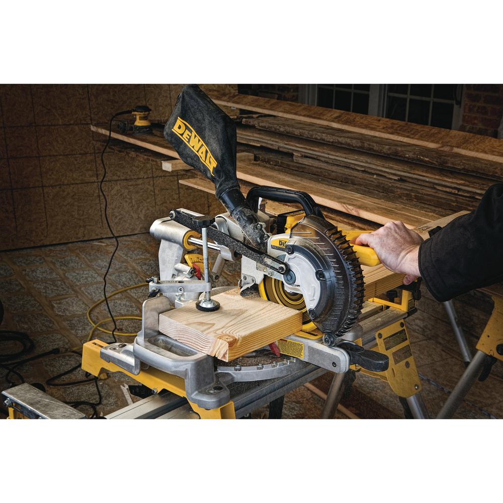 The DEWALT DCS361M1 Miter Saw allows you to take a Miter Saw just about anywhere you can go. No need to lug around generators or extension cords with this DEWALT cordless miter saw. Includes DCB200 20-Volt Max Battery, DCB112 12-Volt - 20-Volt Max Charger, carbide blade, user's guide, blade wrench and material clamp. For a limited time get a bonus bare Cordless Oscillating Multi-Too with purchase.
