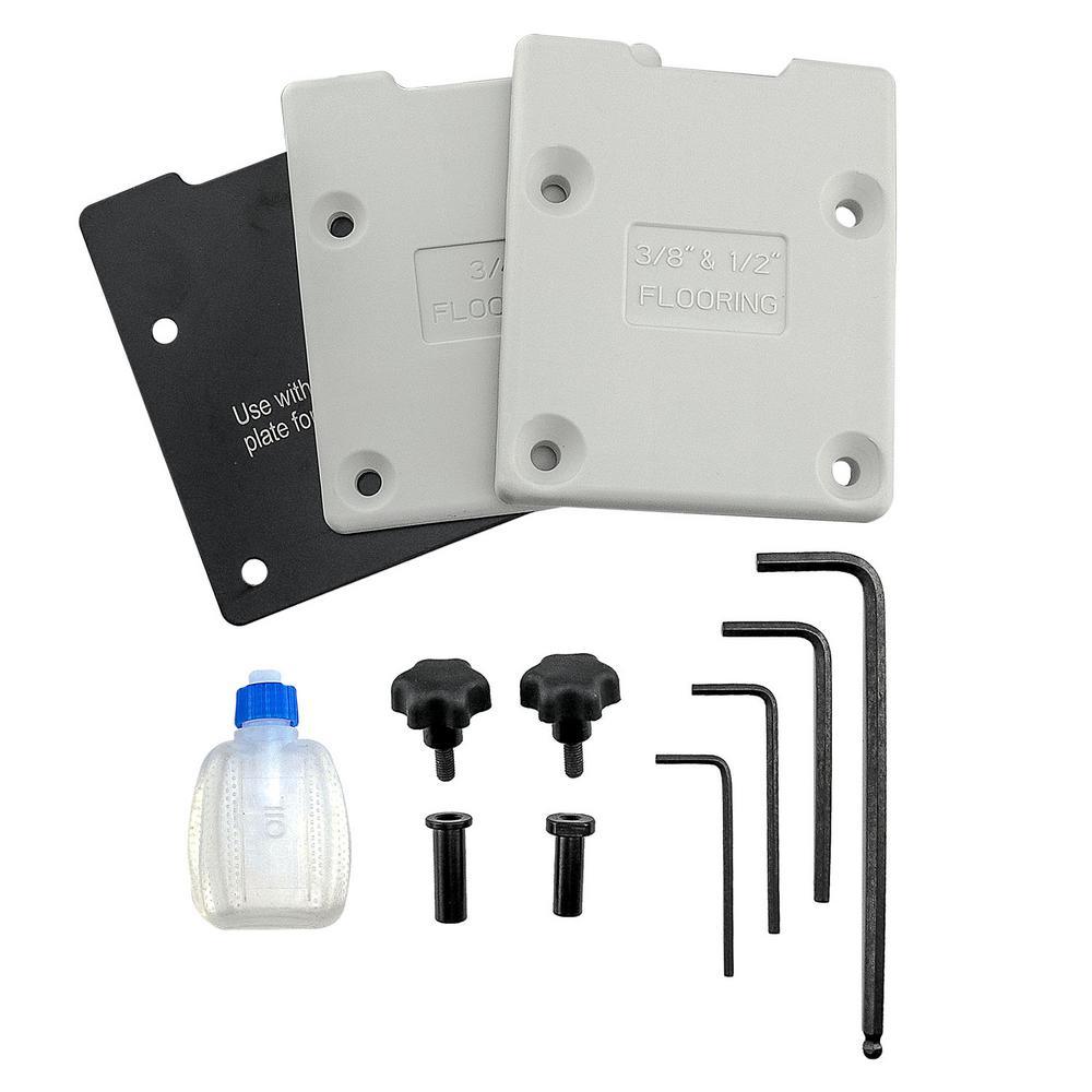 • Interchangeable base plates 3 allow you to work on 3/8 in. to 3/4 in. flooring