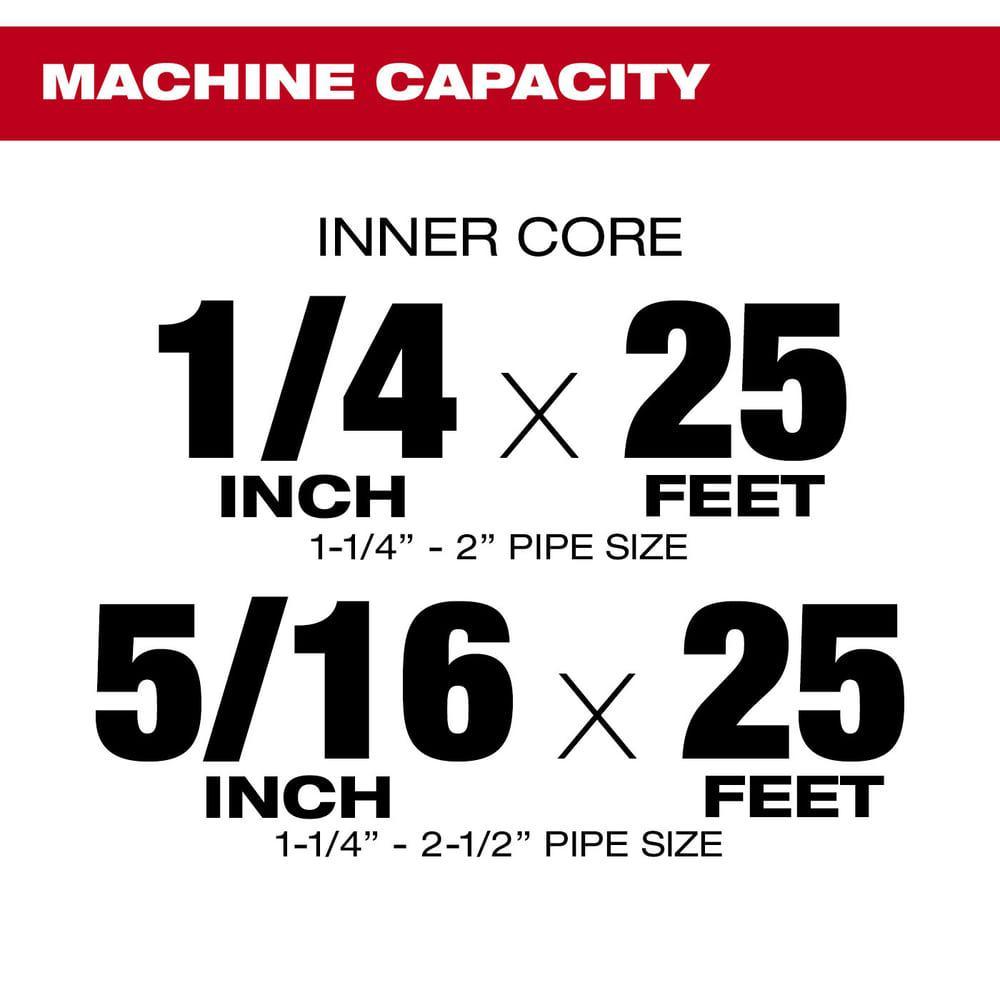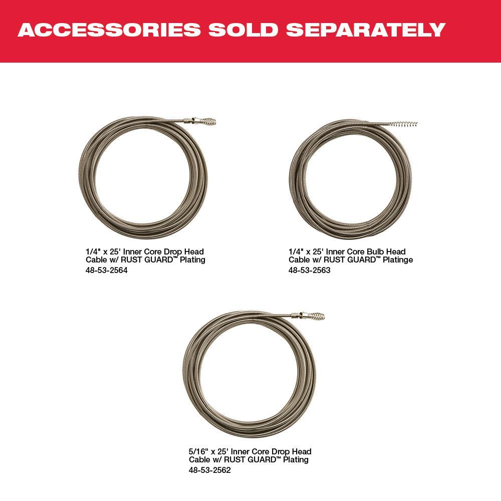 • Includes 2571-20 drain snake, 5/16 in. x 25 ft. inner core bulb head cable with inner drum, (1) M12 REDLITHIUM compact 1.5Ah battery pack, charger and (1) 5 Gal. drain snake storage bucket and M12 2.0 Ah compact battery pack (48-11-2420)