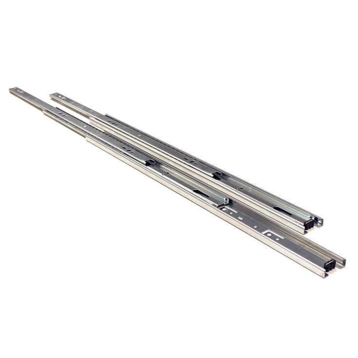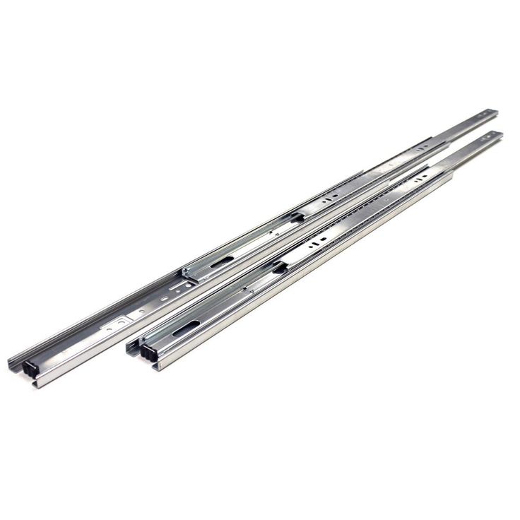 Full extension slides also telescope, allowing the full length of the drawer to clear the cabinet. Choose these when you need easy access to the rear of the drawer, as in a file drawer. High load rating allows you to install those slides on any type of drawer. Full extension drawer slides are ideal for cabinetry, furniture in kitchen, bedroom, bathroom, offices and also other woodworking projects. The rails are made from cold-Rolled steel, in zinc, and have precision steel ball bearings. Ball bearing features help to decrease noise during open and close the drawer.