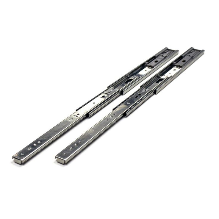 Whether large or small, heavy or light, soft closing action keeps drawers from slamming closed. It adapts to various closing speeds and features overload safety to protect the system from damage over time. Soft close drawer slides are ideal for cabinetry, furniture in kitchen, bedroom, bathroom, offices and also other woodworking projects. The rails are made from cold-rolled steel, in zinc and have precision steel ball bearings.