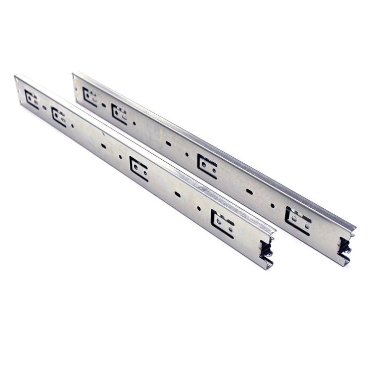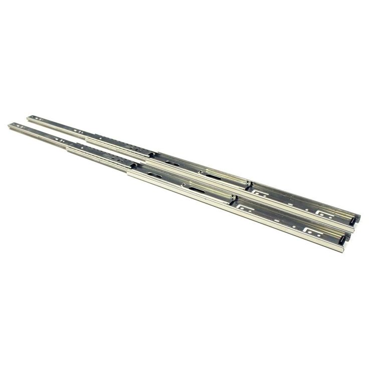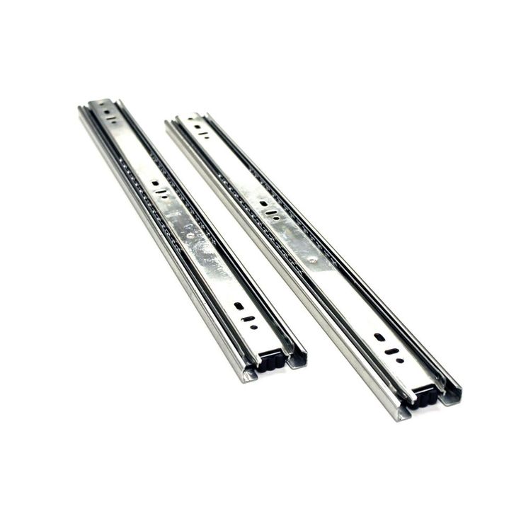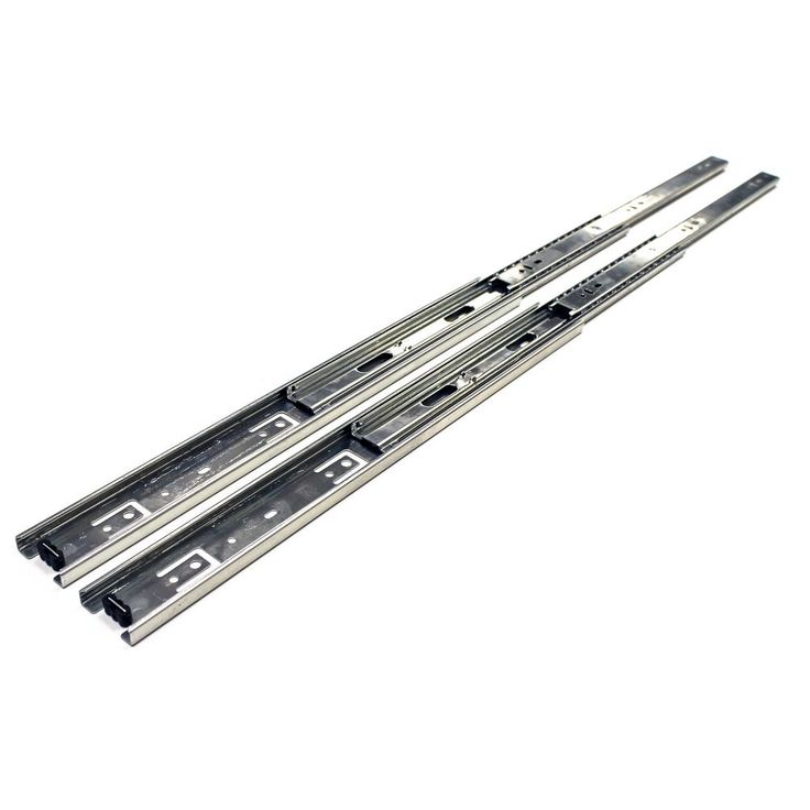 Full extension slides also telescope, allowing the full length of the drawer to clear the cabinet. Choose these when you need easy access to the rear of the drawer, as in a file drawer. High load rating allows you to install those slides on any type of drawer. Full extension drawer slides are ideal for cabinetry, furniture in kitchen, bedroom, bathroom, offices and also other woodworking projects. The rails are made from cold-rolled steel, in zinc, and have precision steel ball bearings. Ball bearing features help to decrease noise during open and close the drawer.