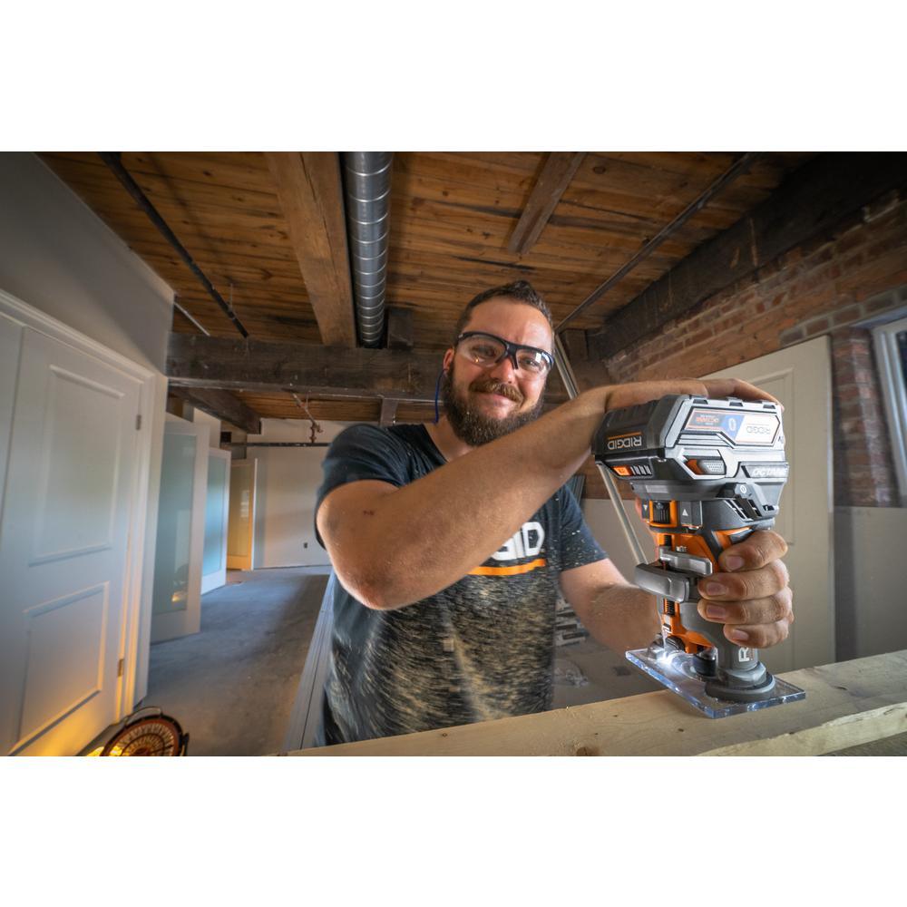 • Router: Up to 15% more power than previous models (R86044B, RIDGID 18-Volt Cordless Brushless 1/4 in. Compact Router with Fixed Base and Tool Free Depth Adjustment)