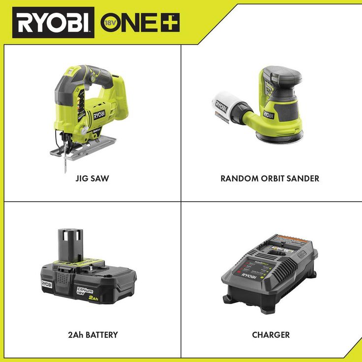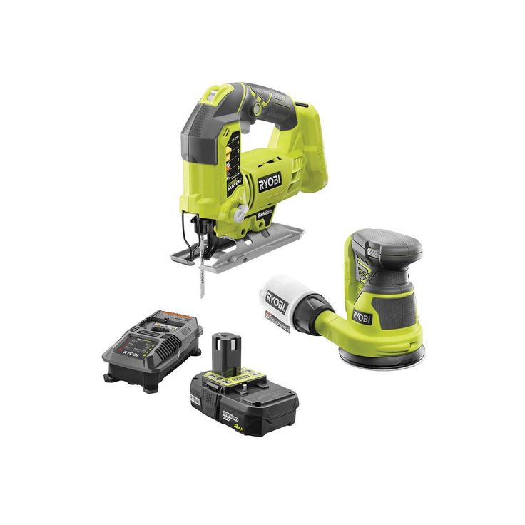 RYOBI introduces the 18-Volt ONE+ Cordless Orbital Jig Saw and 5 in. Random Orbit Sander with 2.0 Ah Battery and Charger. The SPEEDMATCH selector on the Orbital Jig Saw improves cut quality by allowing you to match the speed and orbital settings for a wide array of materials. A separate variable-speed dial lets you select between 1100 and 3000 SPM and innovative BladeSaver feature allows access to unused teeth with the adjustable base. The Random Orbit Sander delivers 10,000 orbits per minute (OPM) for a smooth, swirl-free finish on your work surface. The battery in this kit features lithium-ion battery cells, providing the user with up to 1.5X more runtime compared to Ni-Cd counterparts. The battery is engineered to deliver fade-free power for maximum performance. The 18-Volt ONE+ Dual Chemistry IntelliPort Charger is compatible with all RYOBI ONE+ lithium-ion batteries and features IntelliPort Technology to maximize the lifetime of your RYOBI batteries. Best of all, it is part of the RYOBI ONE+ System of over 175 Cordless Tools that all work on the same battery platform. Backed by the RYOBI 3-Year Manufacturer's Warranty, this kit includes the 18-Volt ONE+ Orbital Jig Saw includes a wood cutting blade, an Allen wrench, the 18-Volt ONE+ 5 in. Random Orbit Sander with an assortment of sandpaper of varying grits, an 18-Volt ONE+ 2.0 Ah Compact Lithium-Ion Battery, a Dual Chemistry IntelliPort Technology Charger, and operator's manuals.