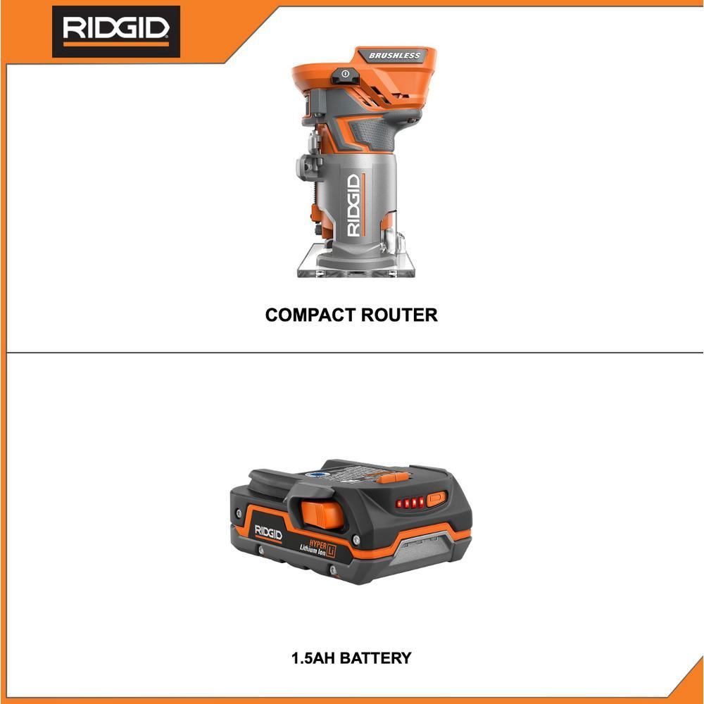 • Brushless 1/4 in. Compact Router: 100% Compatible: Works with all RIDGID 18-Volt Batteries, Tools, and Chargers