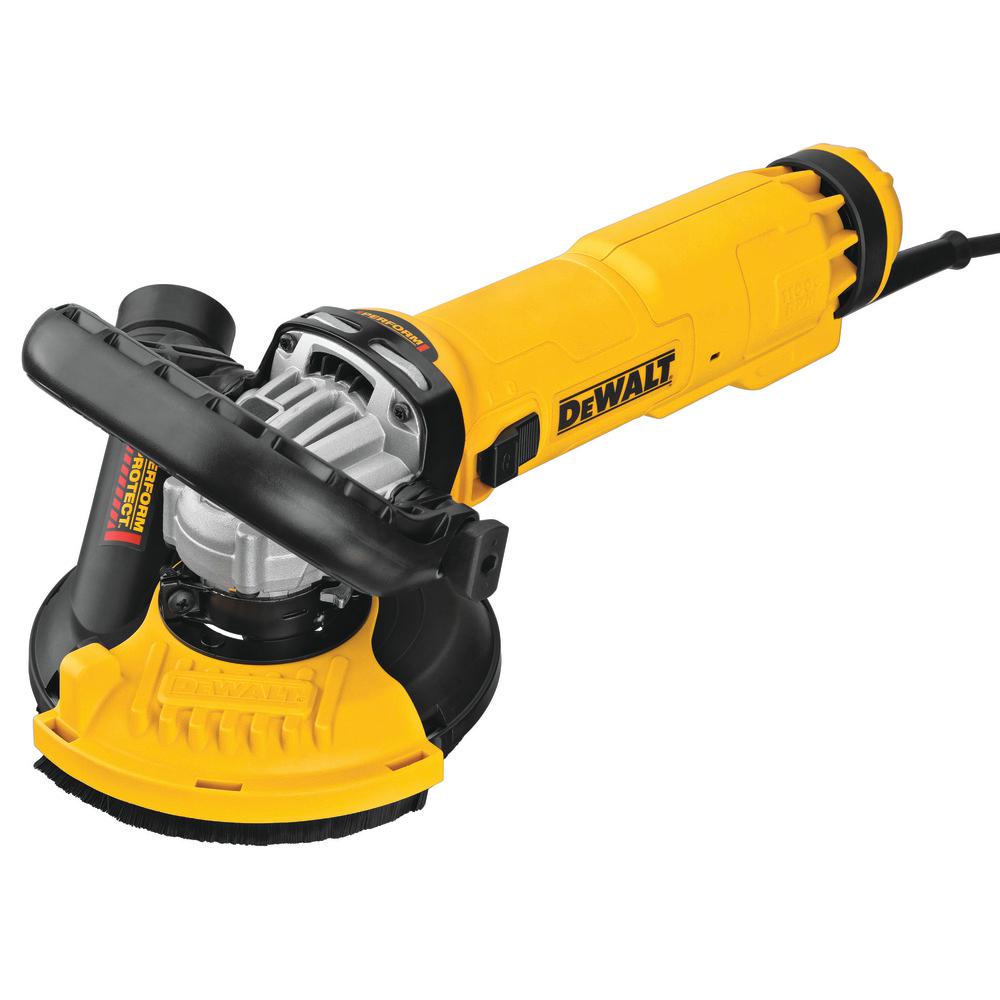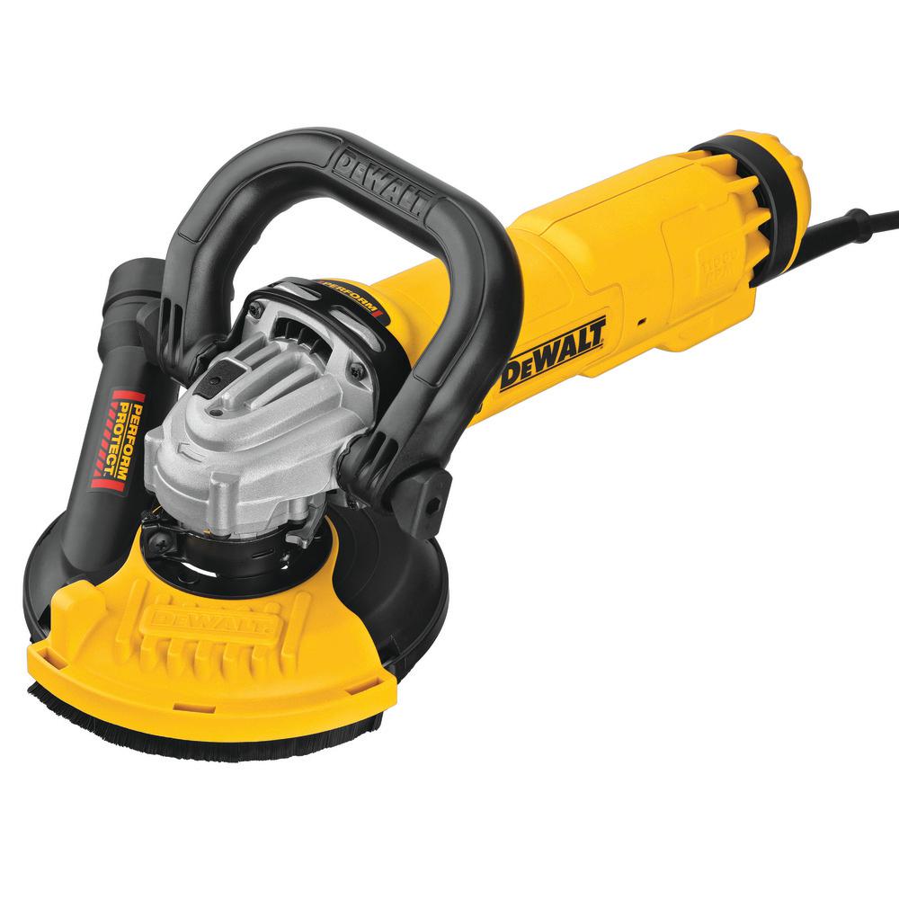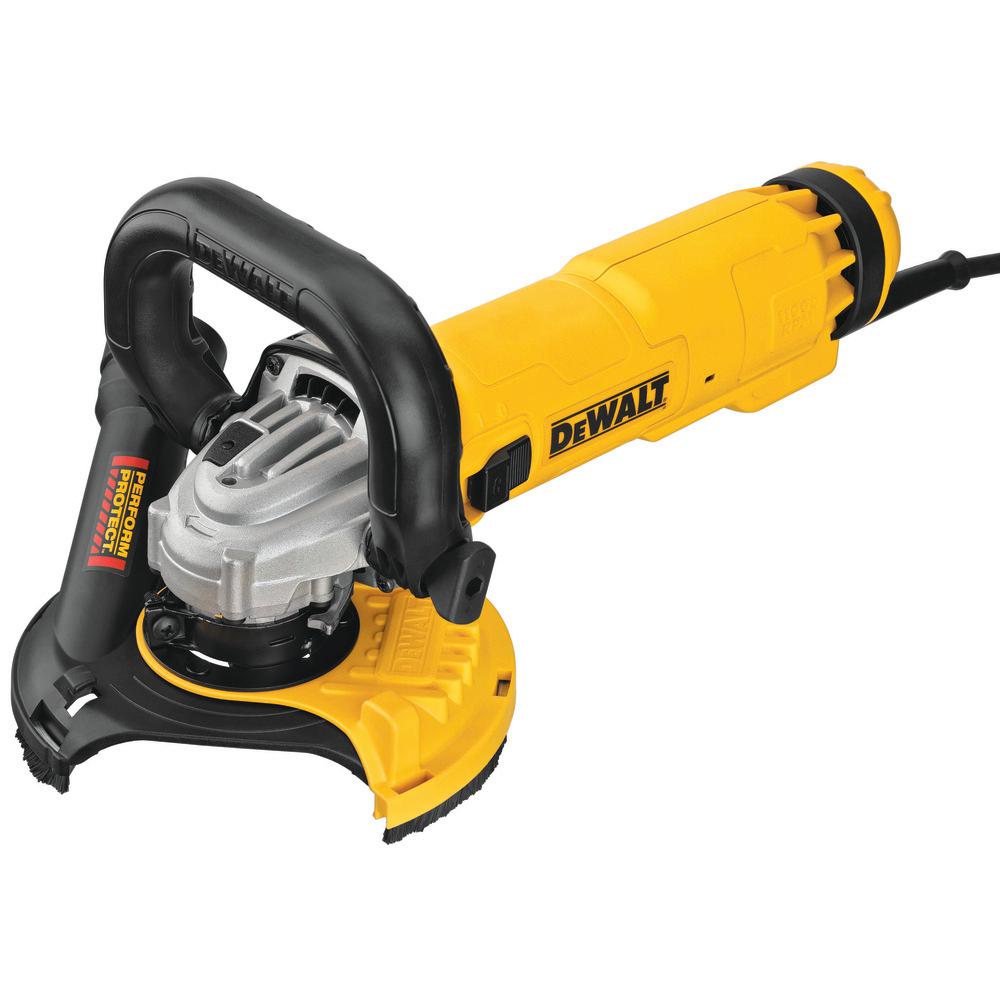 The 4-1/2 in. to 5 in. Surface Grinding Dust Shroud Kit features the DWE4313113 Amp grinder and DWE46152 dust shroud. The 13 Amp grinder is part of the PERFORM and PROTECT line of products with the Anti-Rotation E-CLUTCH System. The E-CLUTCH system helps protect the user in bind up situations by shutting down the tool. The 5 in. surface grinding dust shroud features a flush grinding door which allows the user to perform flush edge grinding while collecting dust.