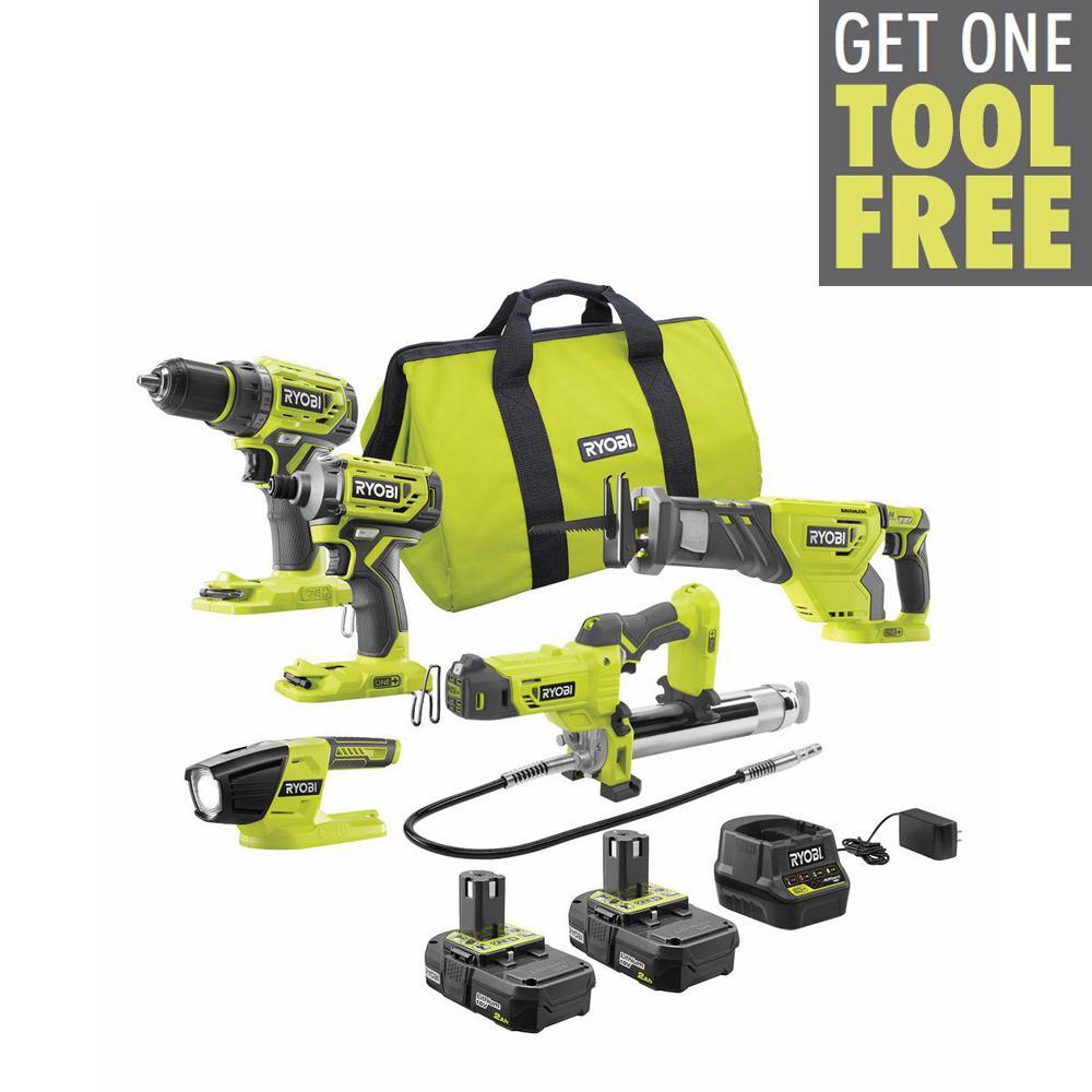 • Includes: (1) 18V ONE+ P252 Brushless Drill/Driver with bit, (1) P239 18V ONE+ Brushless Impact Driver with bit, (1) P518 18V ONE+ Lithium-Ion Brushless Cordless Reciprocating Saw with wood cutting blade, (1) P705 LED Light with integrated mounting hooks, (2) P190 18V ONE+ 2.0 Ah Compact Lithium-Ion Batteries, (1) P118B 18V Charger, a tool bag, Free (1) P3410 18V ONE+ Grease Gun and operator's manual