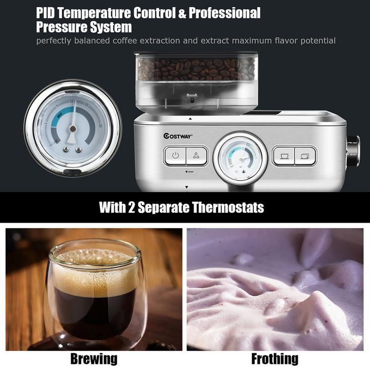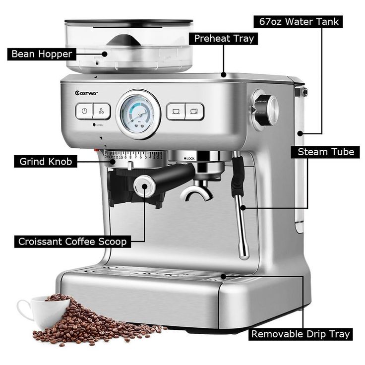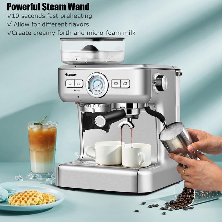 2-Cup Stainless Steel Powerful Pressure Pump Espresso Machine with Grinder & Steam Wand