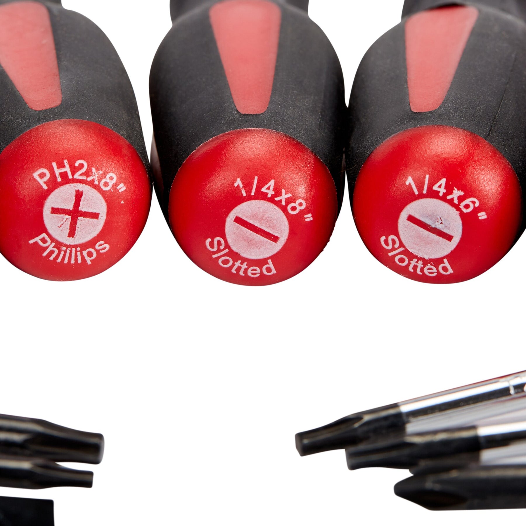 | Included Sizes | Slotted: 1/4-in x 1-1/2-in, 3/16-in x 4-in, 1/4-in x 6-in, 1/4-in x 8-in; Phillips: #2 x 1-1/2-in, #1 x 4-in, #2 x 6-in, #2 x 8-in; Torx: T10 x 3-in, T15 x 3-in, T20 x 4-in, T25 x 4-in |