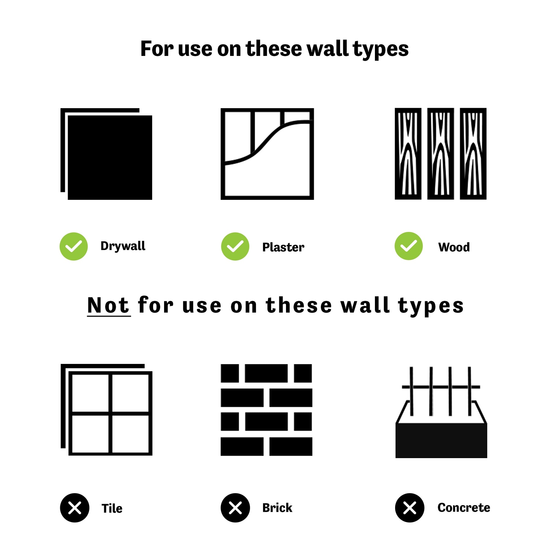 • Wall Compatibility: Ideal for drywall, plaster, and wood; not for tile, brick, or concrete