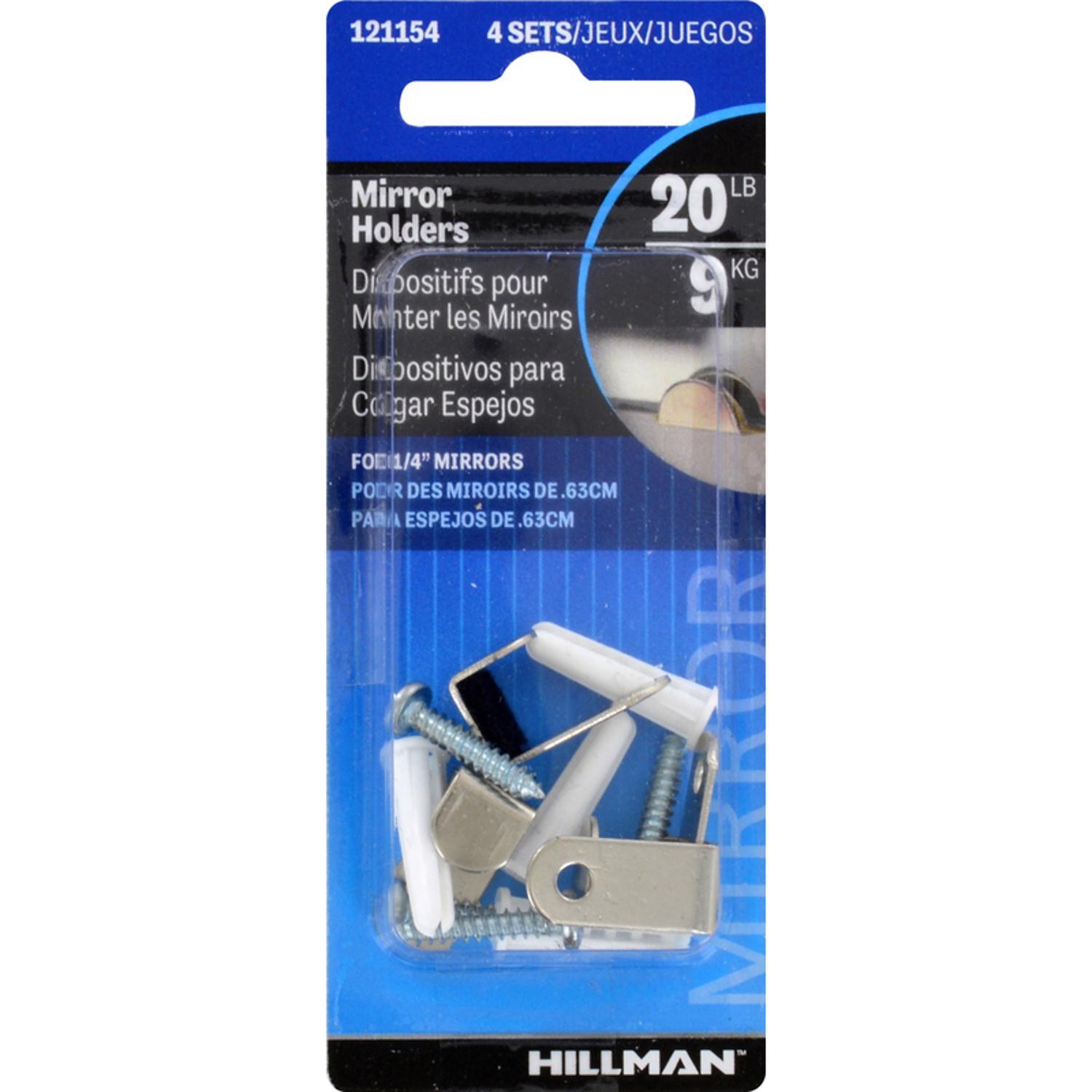 Securely mount mirrors with these low-profile Hillman AnchorWire hidden holders. The sturdy steel clips include screws and anchors for a reliable 20 lb hold without distracting from your mirror’s look.