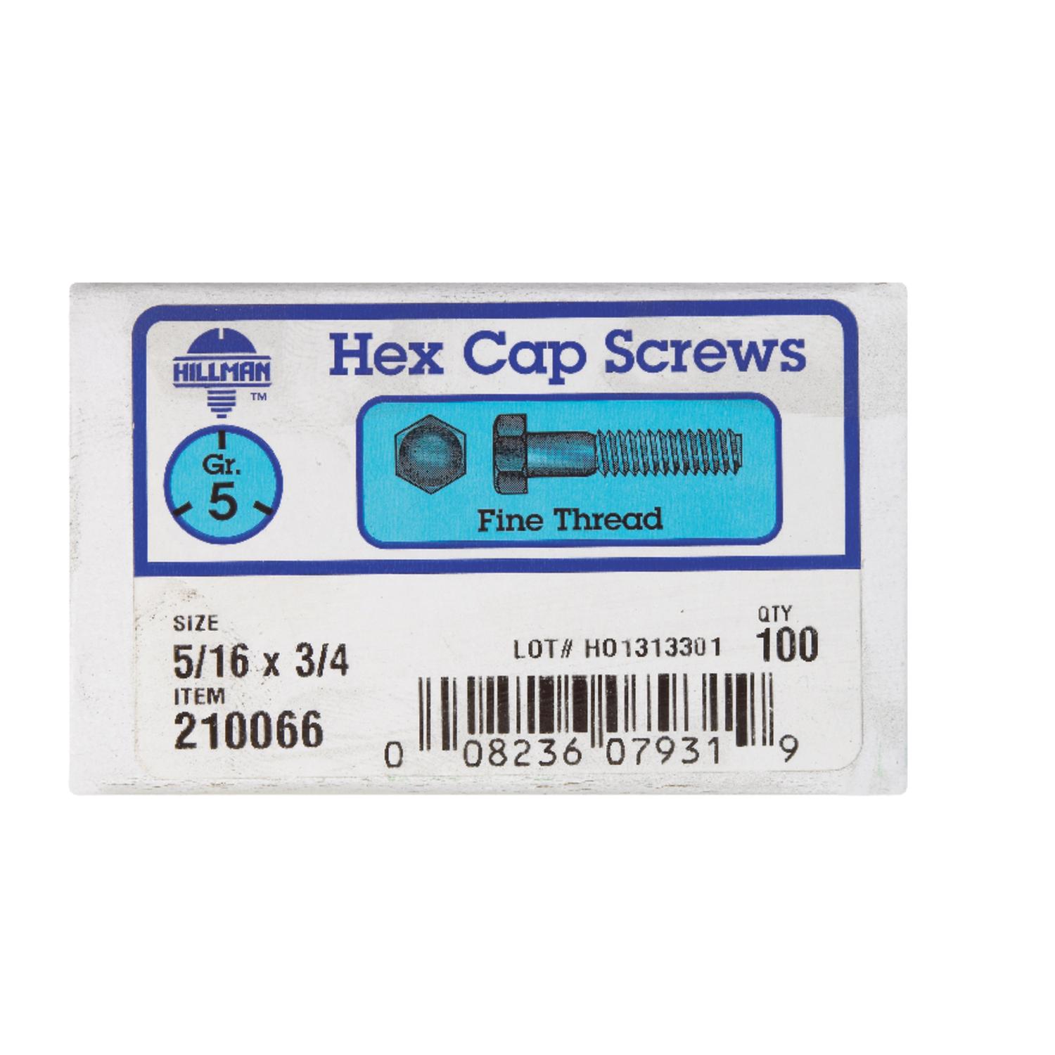 Hillman 5/16 in. Diameter x 3/4 in. Length Grade 5 Heat-Treated Zinc Steel Hex Head Cap Screw, Fine Thread, 100-Pack