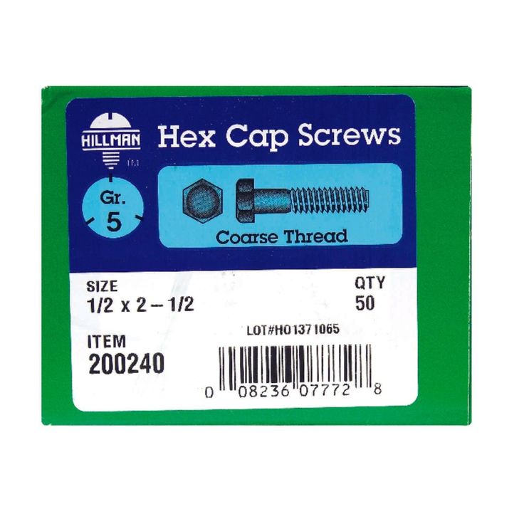 Regular price $44.11Hillman 1/2" x 2-1/2" Zinc Steel Hex Head Cap Screws (25-Pack)