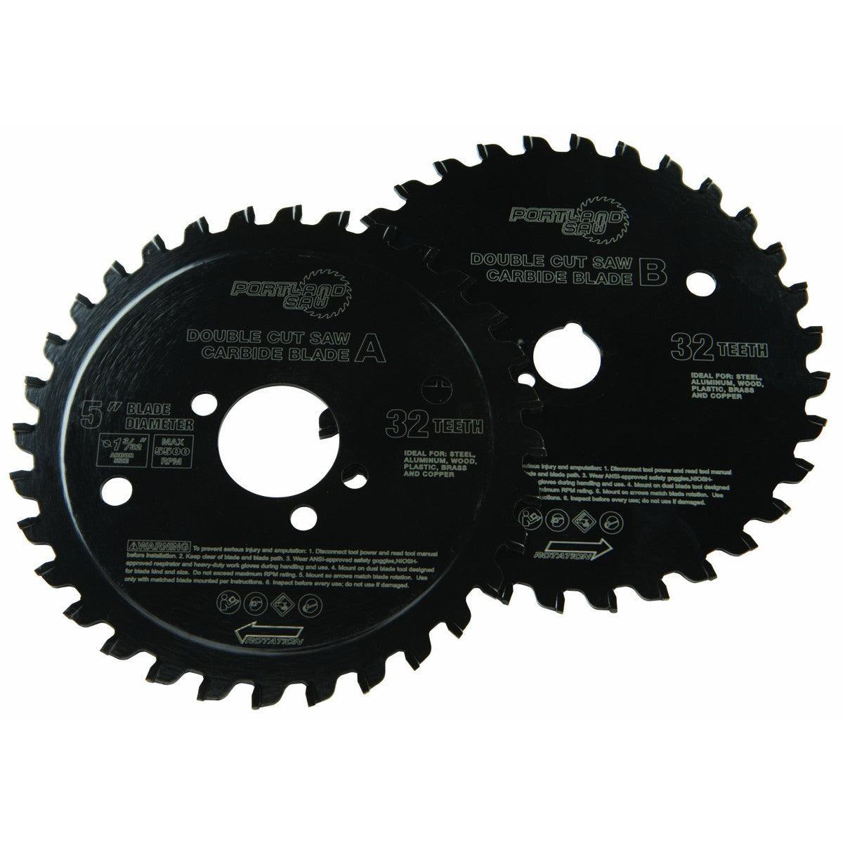 These replacement blades for your double cut saw are fully resharpenable. The carbide tips cut through plastic, wood and metal with ease. 32 teeth on each blade provide super-smooth finished cuts.