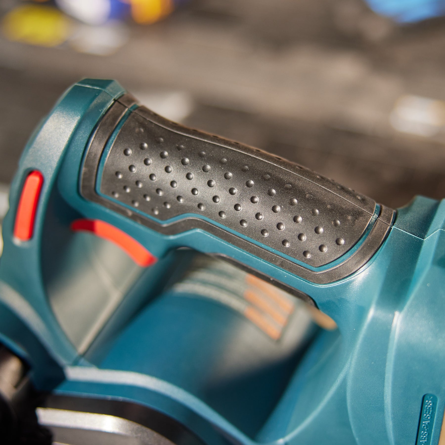 The Bosch PLH181B 18V planer delivers fast stock removal and a smooth finish in a cordless, compact form. A single Woodrazor carbide blade, ratcheting depth knob, and aluminum shoes provide precise, consistent planing across doors and workpieces.