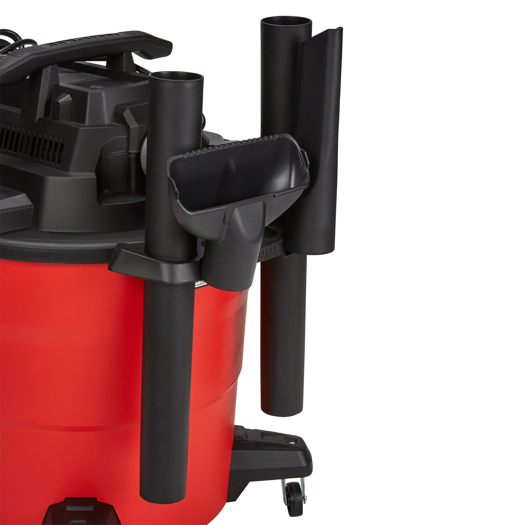 A powerful 16-gallon wet/dry shop vacuum built for heavy-duty cleanup around the home and jobsite. It features a 6 peak HP motor, 2-1/2-in diameter hose for large debris, and on-board storage for hose, accessories and power cord. A rear blower port and built-in tank drain add versatility and easy emptying.