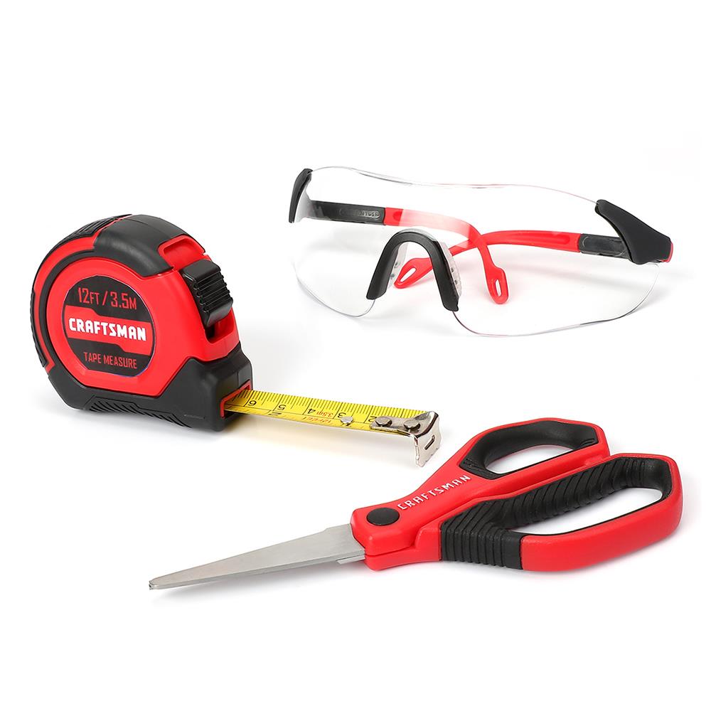 A complete starter tool set sized for young DIYers, this 8-piece CRAFTSMAN kit includes essential hand tools and a durable storage bag. Soft-grip handles and safety eyewear help make early projects comfortable and safe.