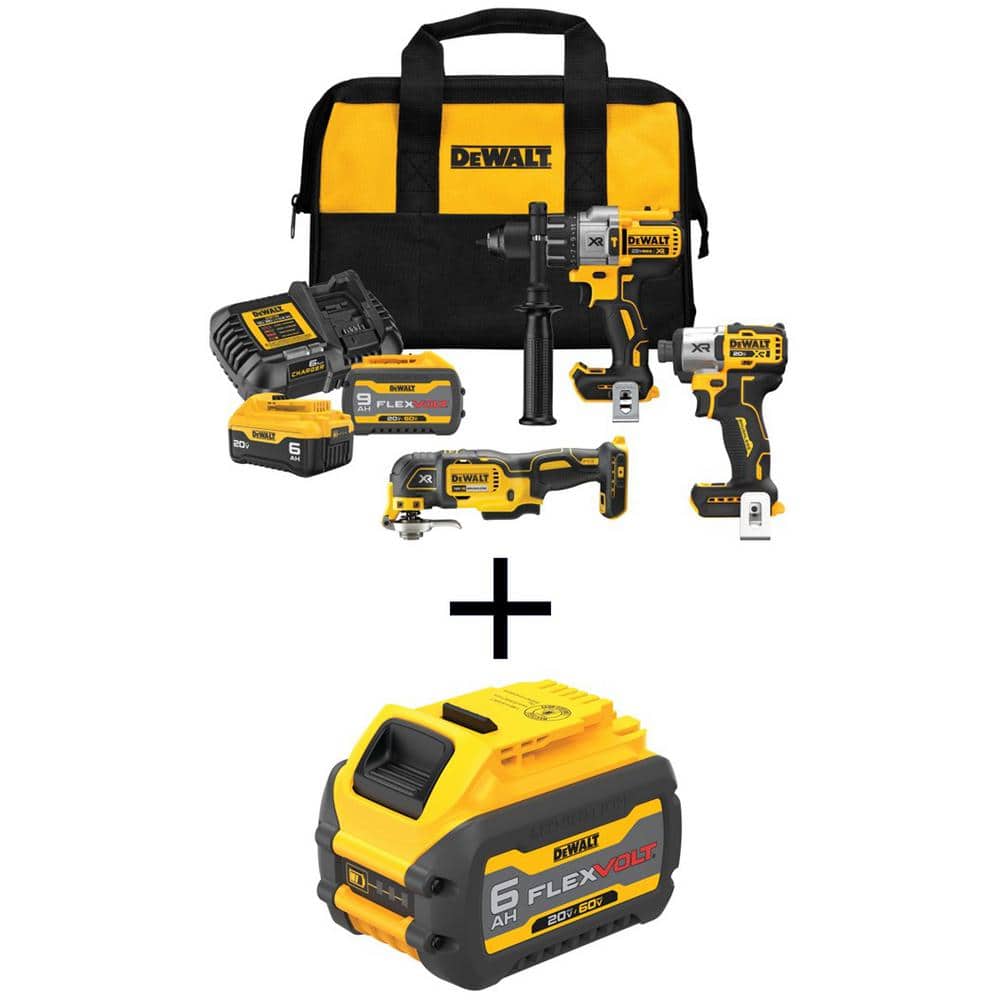 DEWALT 20-Volt Lithium-Ion Cordless 3-Tool Combo Kit with Flexvolt 9 Ah, Flexvolt 6 Ah and 20-Volt 6 Ah Batteries and Charger