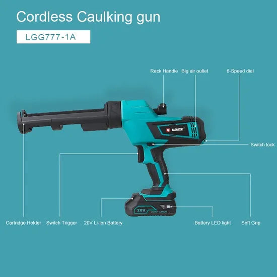 The Liangye 20V Heavy Duty Cordless Caulk and Adhesive Gun combines power and precision for seamless application of sealants and adhesives. Equipped with a robust 20V lithium-ion battery, it delivers smooth, consistent flow control, ensuring professional-level results for every project. Built for ease and efficiency, this gun is ideal for both professionals and DIY enthusiasts tackling demanding tasks.