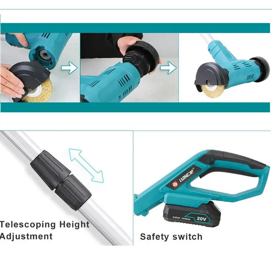 Experience powerful, hassle-free grout and tile cleaning with the Liangye 18V Cordless Grout Cleaner. Designed for efficiency and ease of use, this machine is perfect for tackling stubborn dirt in grout lines and tile edges without the need to kneel or bend. It features an adjustable telescopic handle and interchangeable brush heads for user comfort and adaptability to various cleaning tasks.