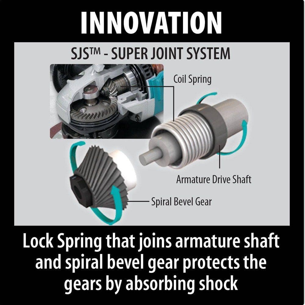 Experience power and precision with the Makita 6 in. Angle Grinder, featuring a robust 13 AMP motor and innovative SJS technology for exceptional gear protection. Ideal for professional contractors, it offers variable speed control for a wide range of grinding and polishing tasks, ensuring consistent performance with added safety features that protect against overload and debris.