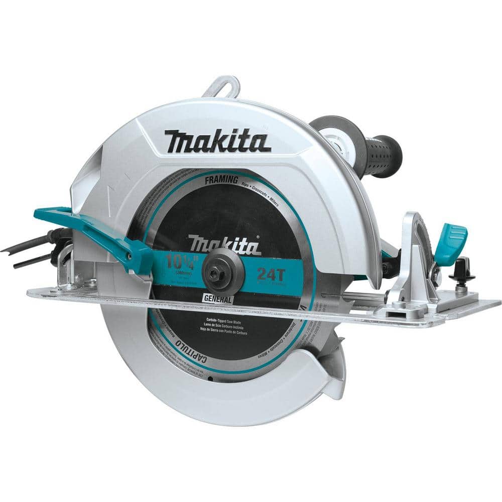 This Makita 10-1/4 in. corded circular saw delivers 4x cutting capacity in a single pass with a robust 15 Amp motor driving 4,300 RPM. A magnesium blade case, aluminum base, and dual bevel supports provide accuracy and durability for framing, timber, and engineered lumber.