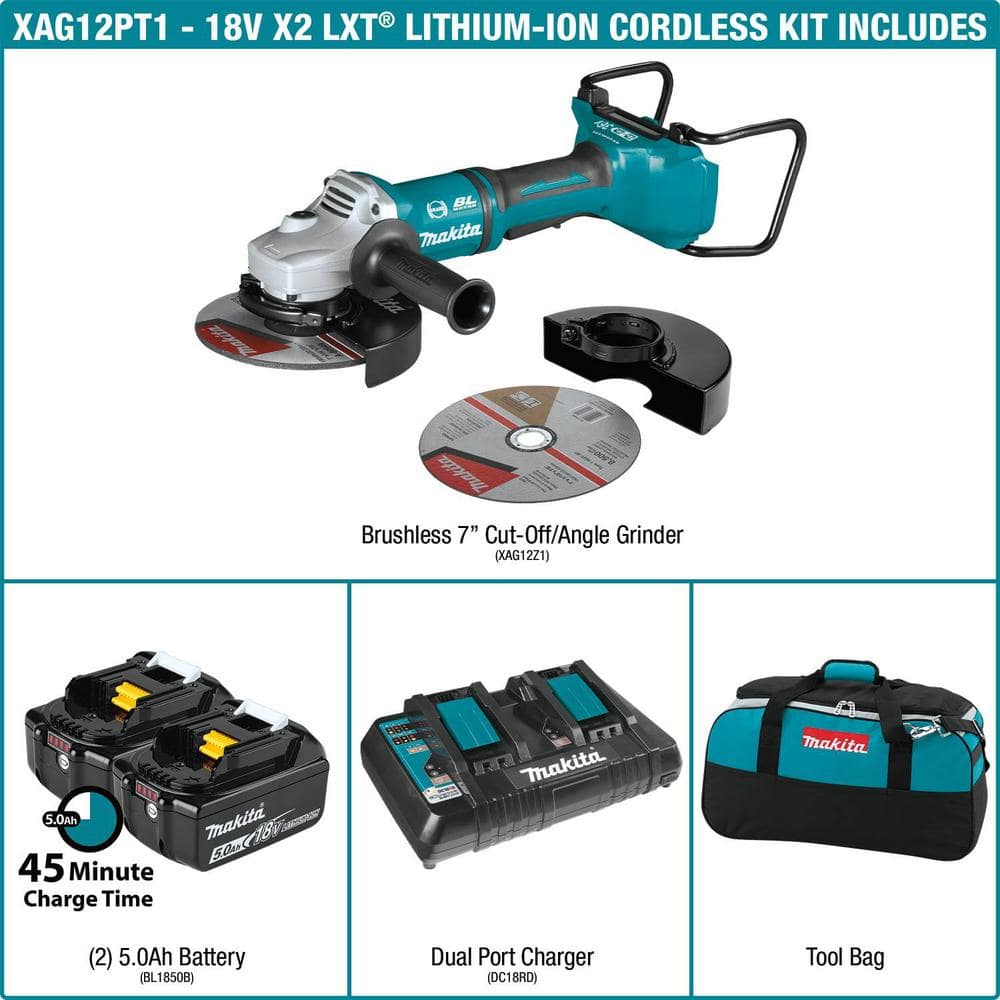 Makita 18V 5.0Ah X2 LXT Lithium‑Ion (36V) Brushless Angle Grinder Kit