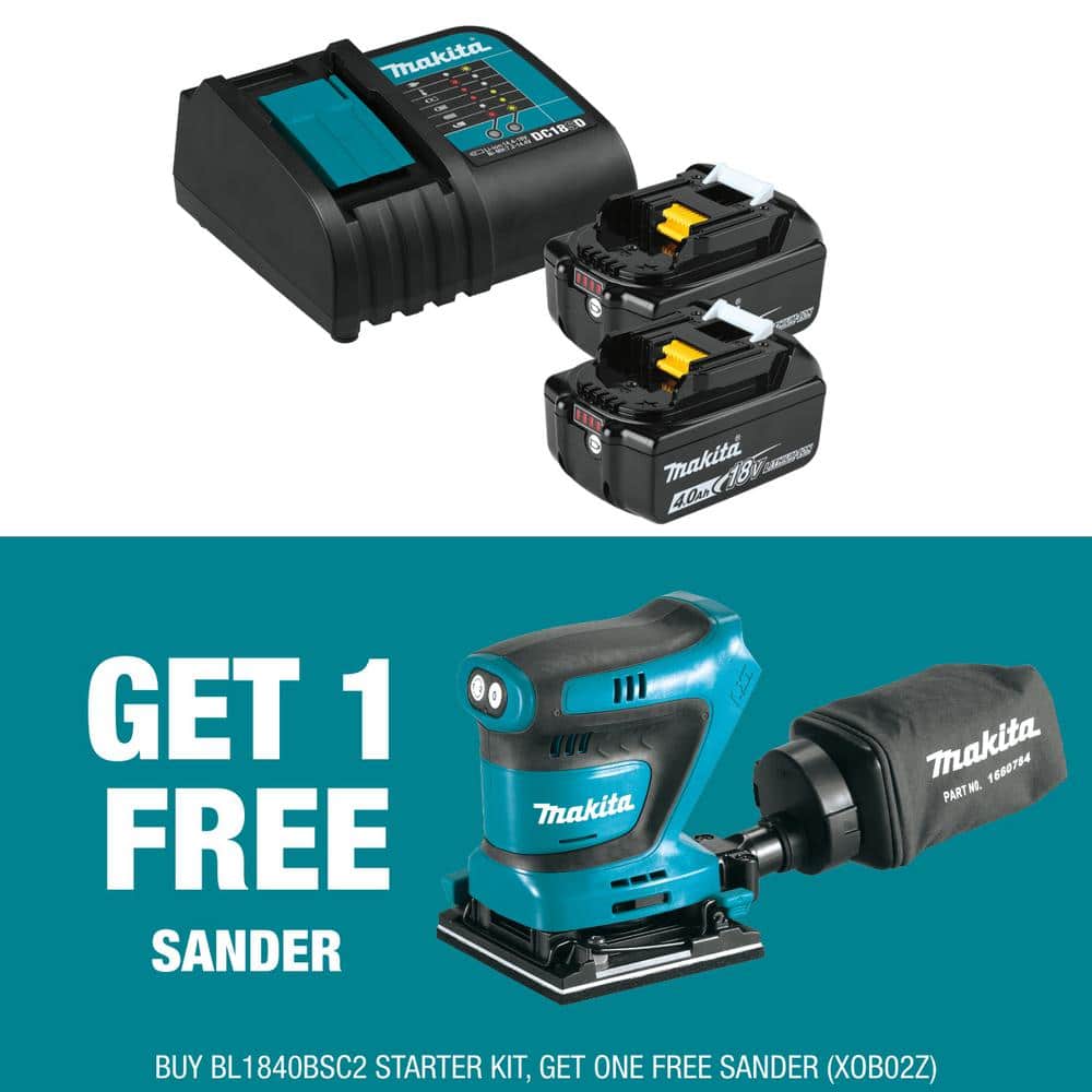 Makita 18V LXT Lithium-Ion Battery and Charger Starter Pack (4.0Ah) with bonus 18V LXT 1/4 in. Sheet Finishing Sander
