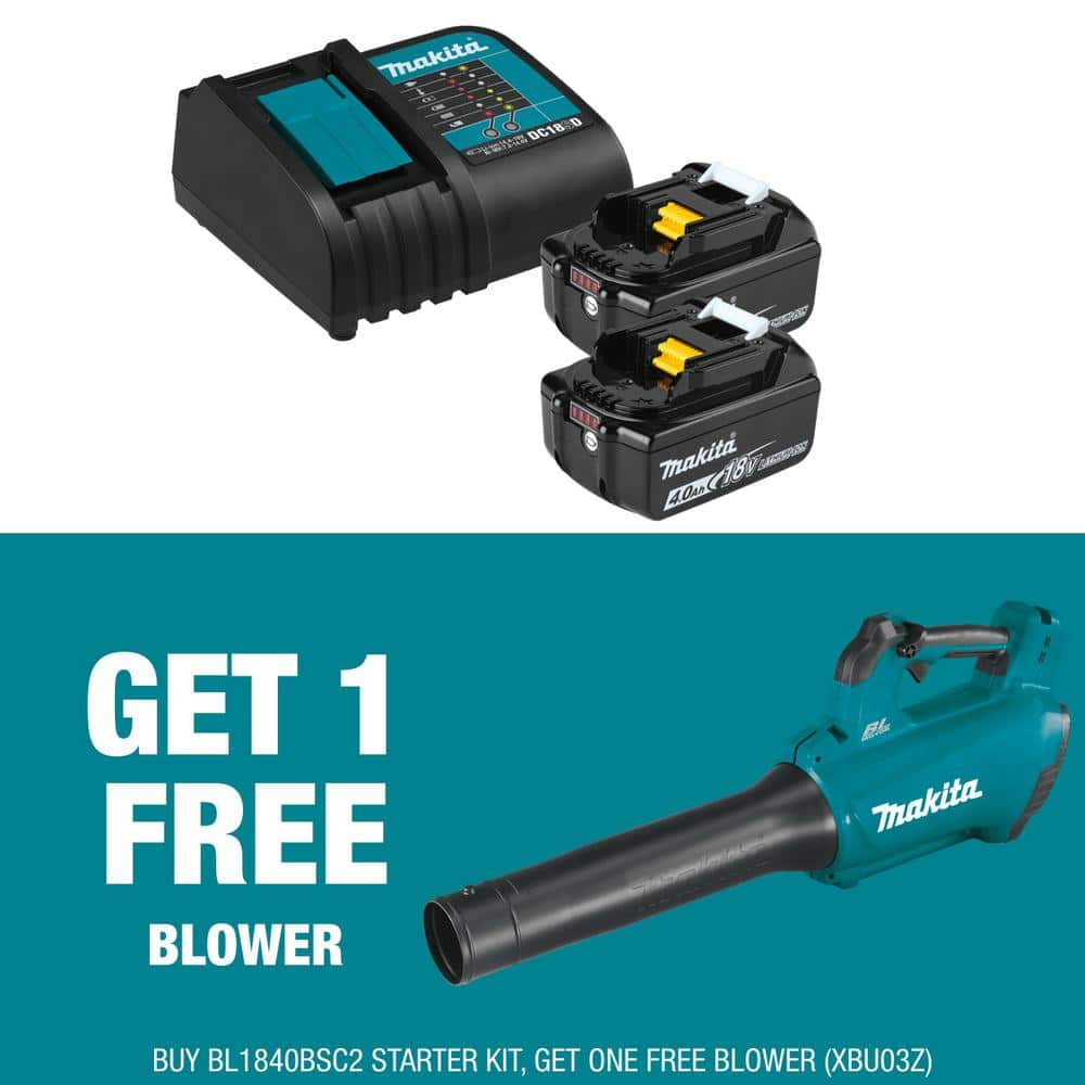 Makita 18V LXT Lithium-Ion Battery and Charger Starter Pack (4.0Ah) with bonus 18V LXT Lithium-Ion Brushless Cordless Blower