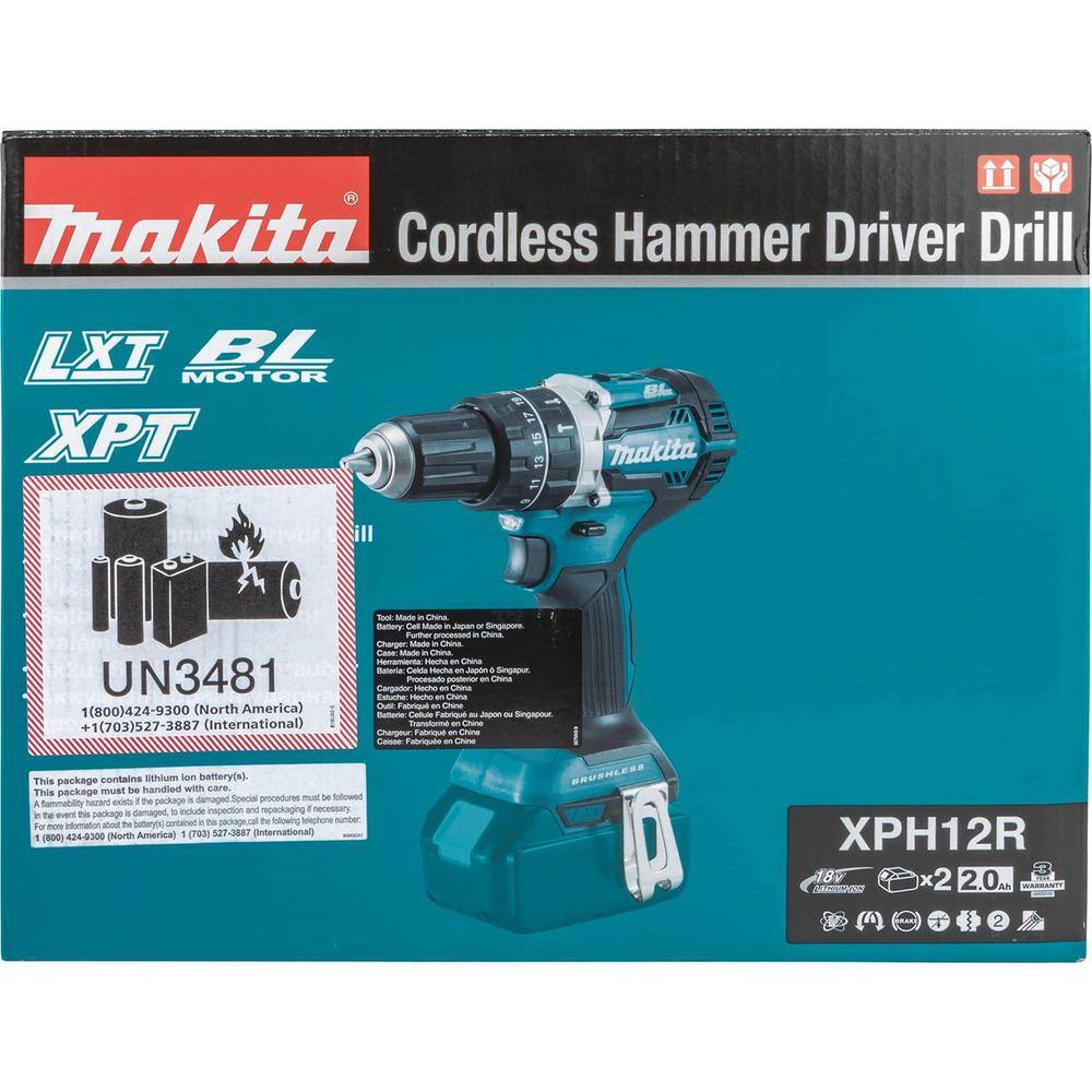 Makita 18V LXT Lithium‑Ion Compact Brushless Cordless 1/2 in. Hammer Driver‑Drill Kit with (2) 2.0Ah Batteries and Hard Case