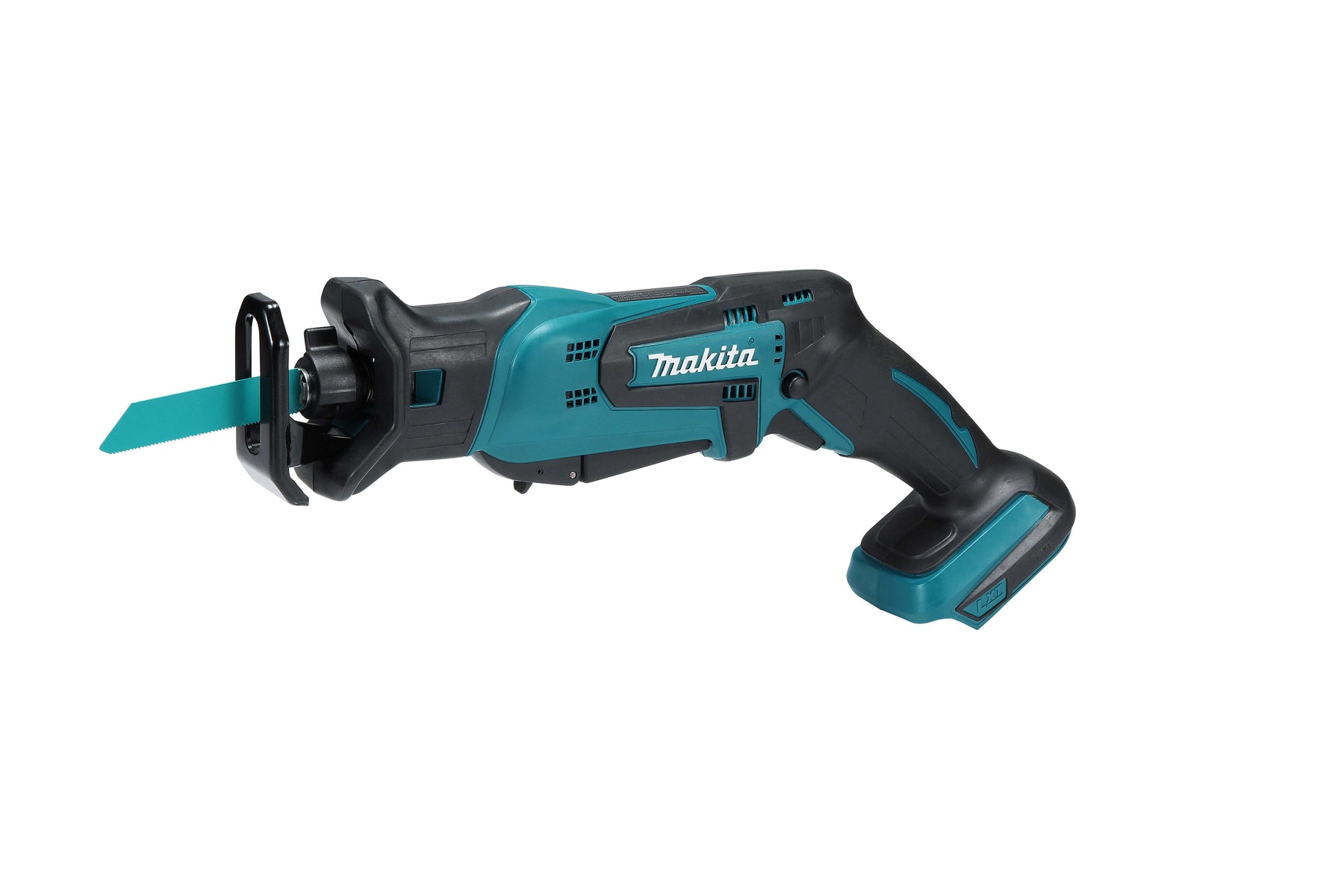 A lightweight, compact reciprocating saw designed for fast, efficient cutting with variable speed and a 1/2" stroke length. Features tool-less blade changes, built-in LED illumination, and Makita’s dual-position on/off switch for paddle or trigger operation. Compatible with Makita 18V LXT batteries; battery and charger sold separately.