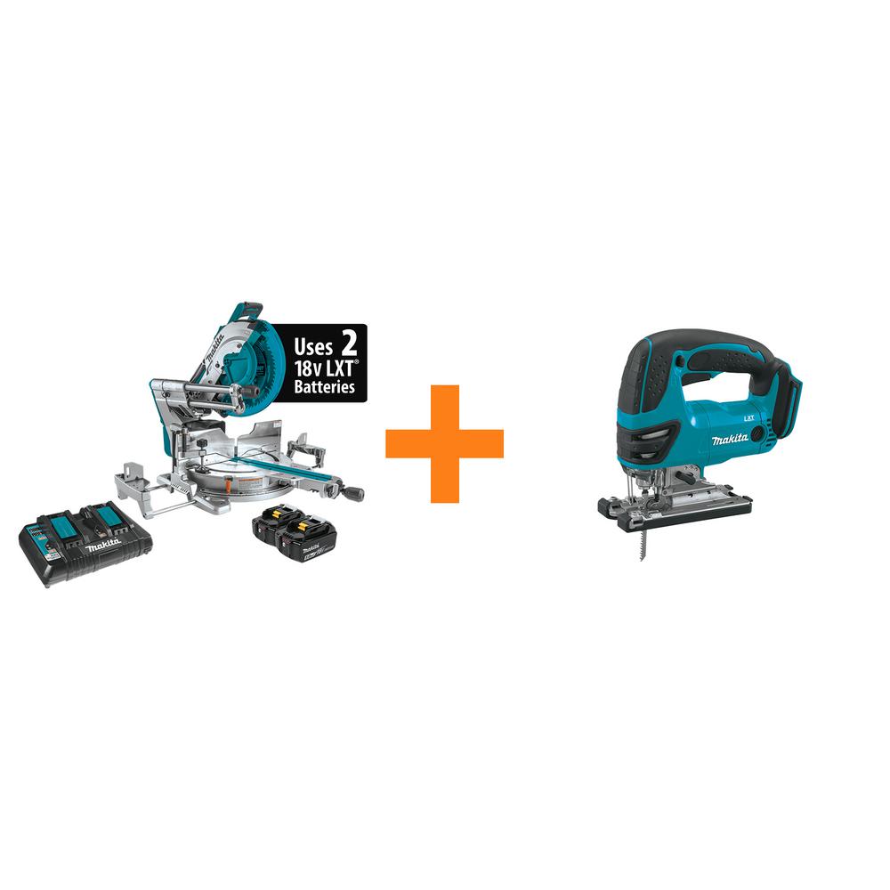 Makita 18V X2 LXT (36V) 12 in. Brushless Dual‑Bevel Sliding Compound Miter Saw Kit, 5.0Ah, with Bonus 18V LXT Jigsaw (Tool‑Only)