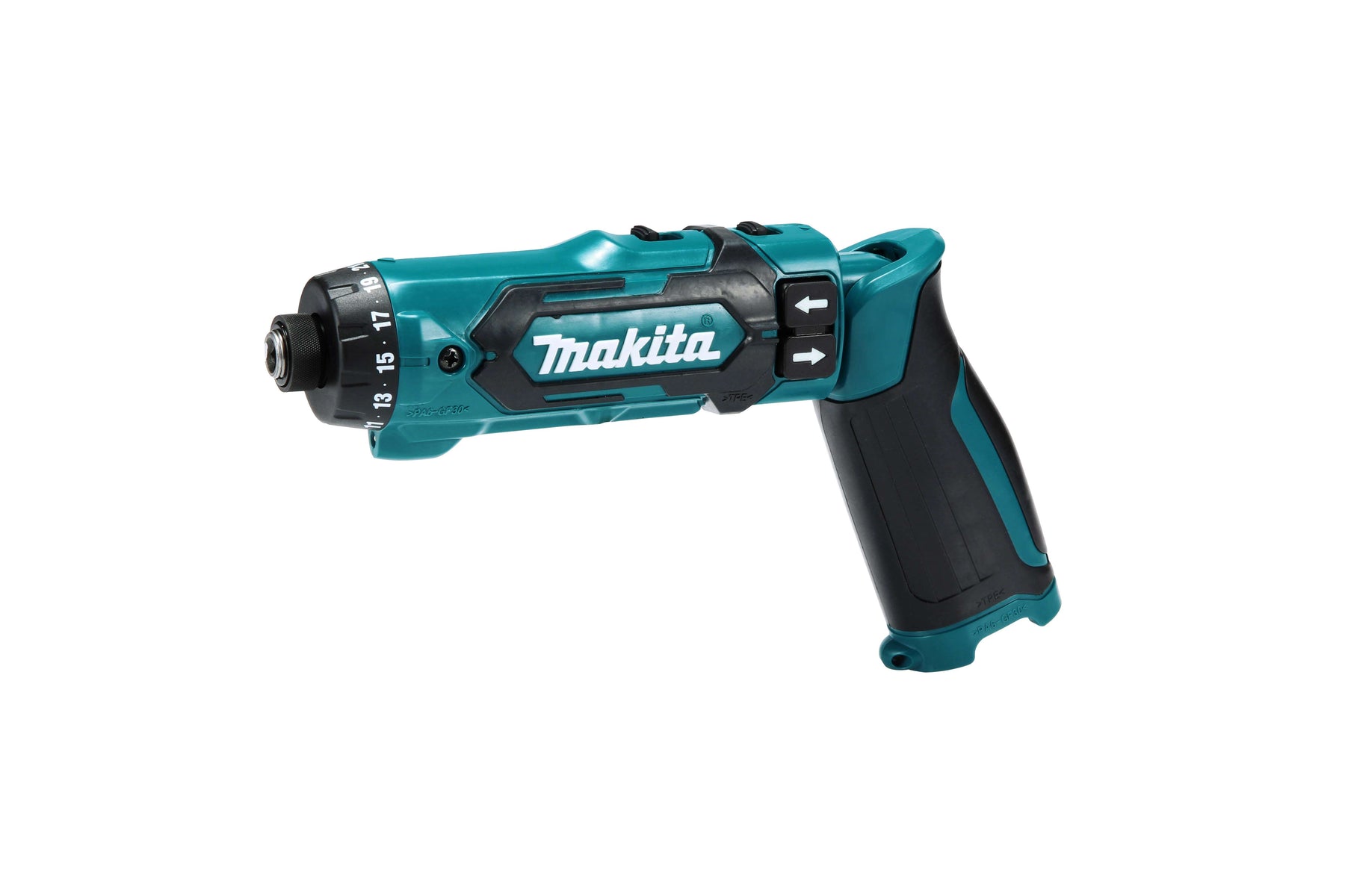 Ultra-compact Makita 7.2V Lithium‑Ion driver‑drill delivers precise fastening with an auto‑stop clutch and 21 clutch settings. Dual-position handle converts from straight to pistol grip, and the 2-speed motor (200/650 RPM) tackles assembly and light-duty drilling with control.