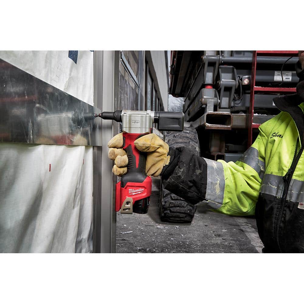 Experience efficient and effortless riveting with the Milwaukee M12 Cordless Rivet Tool. Engineered for performance and durability, this compact tool eliminates the need for compressors or hoses and offers the versatility of handling various rivet sizes. Its lightweight design and compatibility with the M12 system make it ideal for tackling tight spaces and demanding job sites.