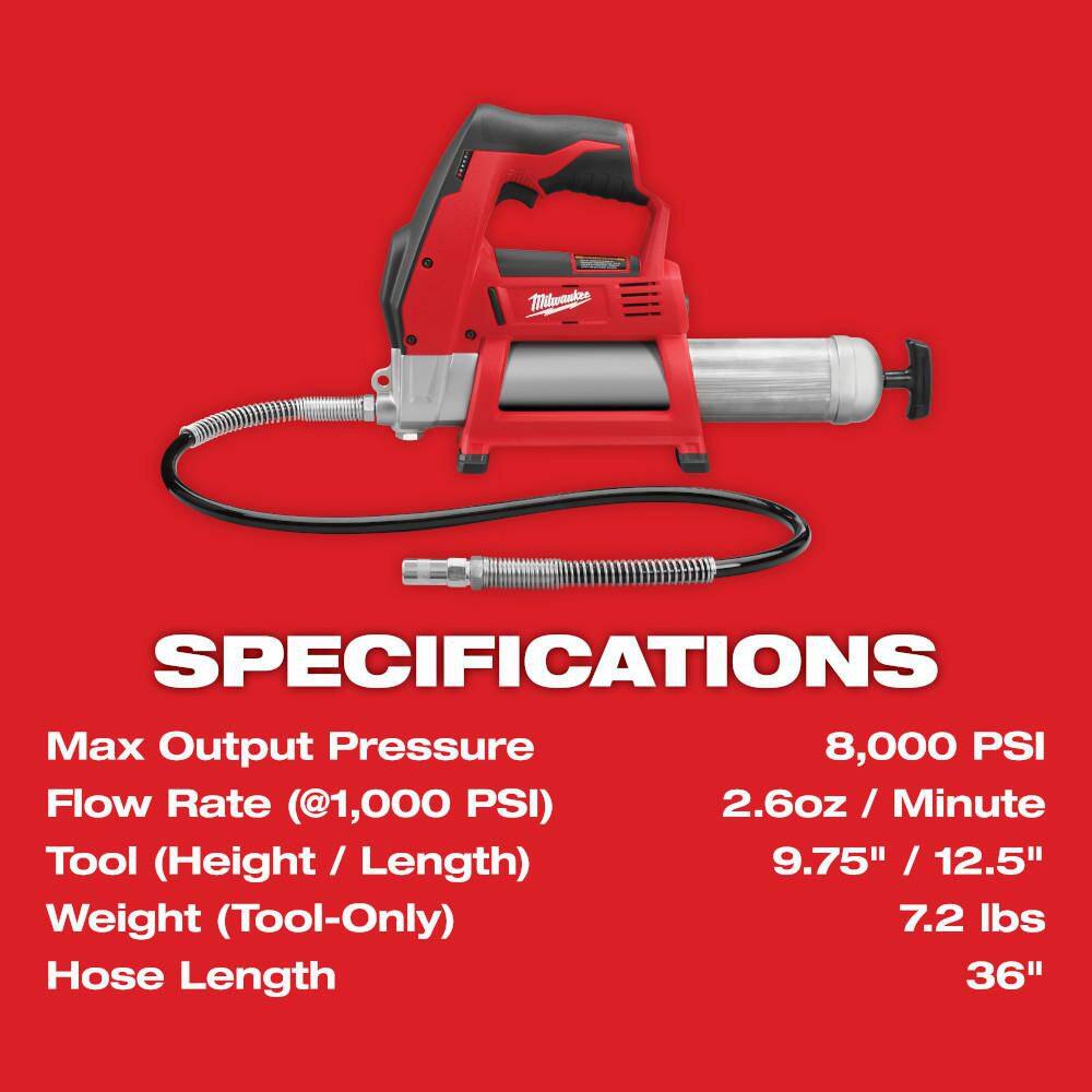 Grease Gun Flow Rate (@1000 PSI) 2.6 oz/min (per image spec)