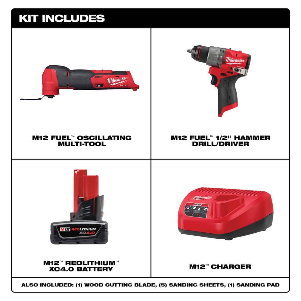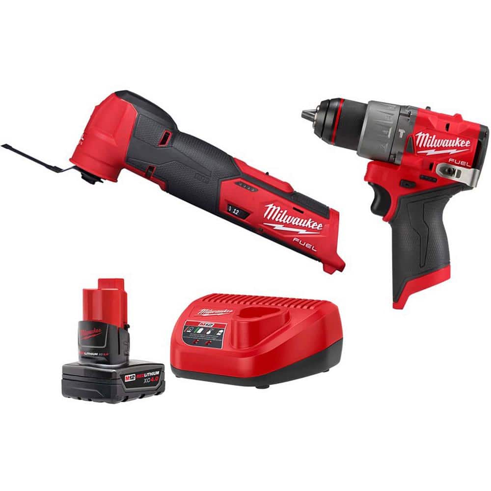 Milwaukee M12 FUEL 12-Volt Lithium-Ion Cordless Oscillating Multi-Tool and M12 FUEL 1/2 in. Hammer Drill with Battery and Charger