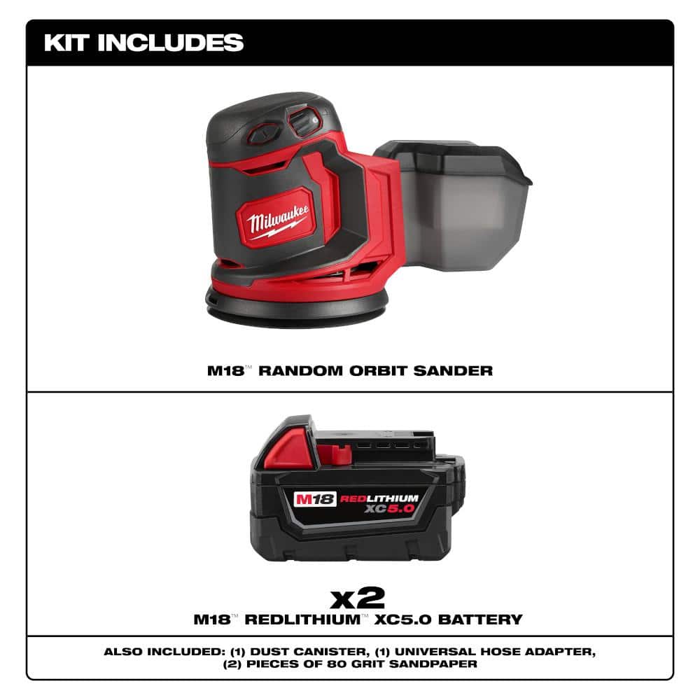 Milwaukee M18 18V Lithium-Ion Cordless 5 in. Random Orbit Sander with Two 3.0 Ah Batteries