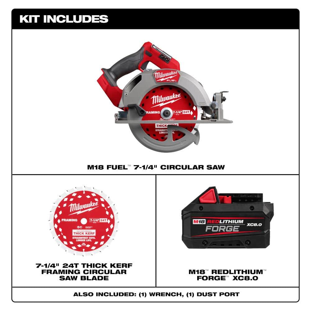 Milwaukee M18 FUEL 18V Brushless Cordless 7-1/4 in. Circular Saw with REDLITHIUM FORGE XC 8.0Ah Battery Pack
