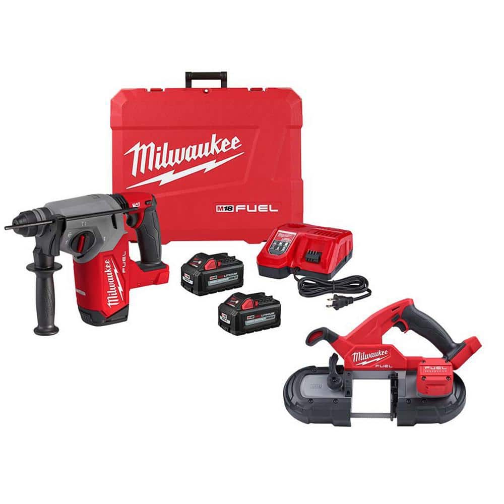 Milwaukee M18 FUEL 18V Lithium‑Ion Brushless 1 in. Cordless SDS‑Plus Rotary Hammer Kit with Compact Band Saw, 2 XC6.0 Batteries and Charger