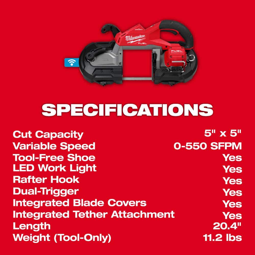 Milwaukee M18 FUEL 18V Brushless Cordless Deep Cut Dual-Trigger Band Saw with ONE-KEY, 5 in. Capacity (Tool-Only)