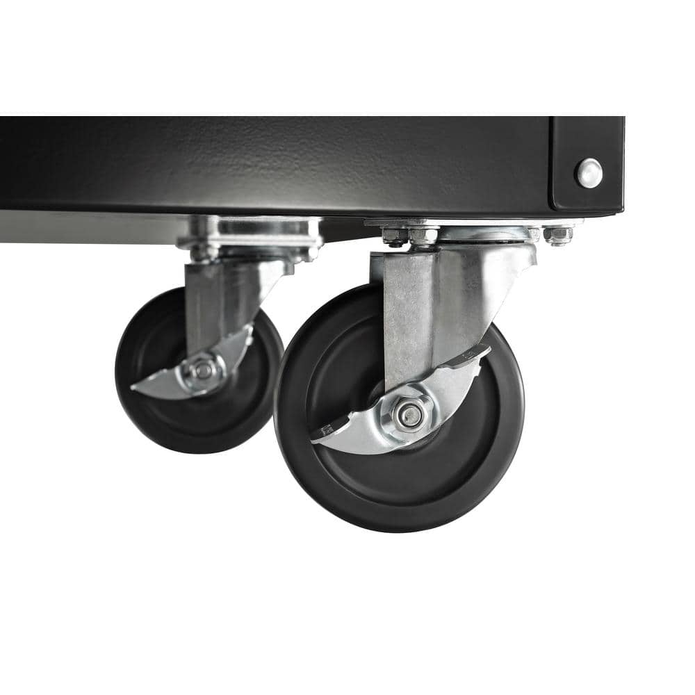 A: The tool chest comes with four caster wheels for full 360-degree maneuverability, making it easy to move around your workspace effortlessly.